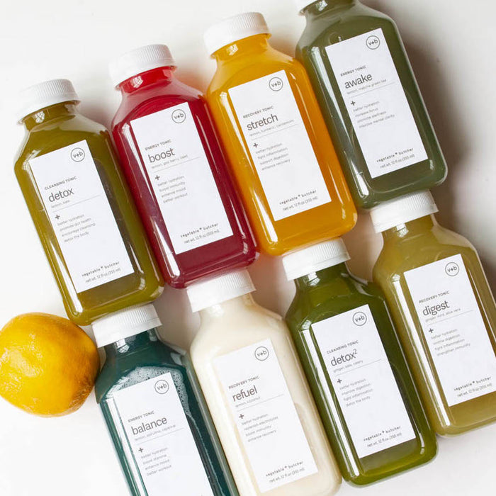 Every day, rise with an AWAKE, get your veggies with a DETOX^2, ease your way into STRETCH, get an afternoon pick-me-up with REFUEL, BALANCE out your evening, and enjoy a great sleep after you DIGEST.