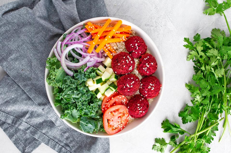 A salad packed with nutrients! Beets are a great source of folate, potassium, iron and phosphorous. Kale is one of the most nutrient-dense plant foods–it’s rich in vitamin A, vitamin K, and manganese. Zucchini is rich in B-vitamins, copper, and antioxidants.