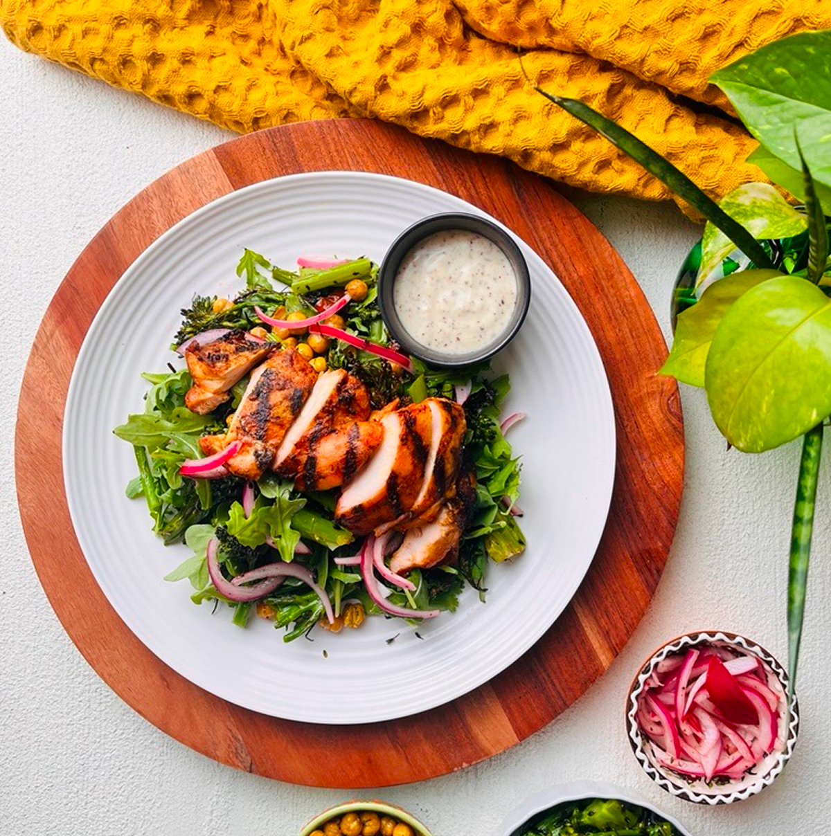 Broccolini Bowl w/ Sumac Onions + Sumac Dressing with Citrust Curry Roasted Chicken