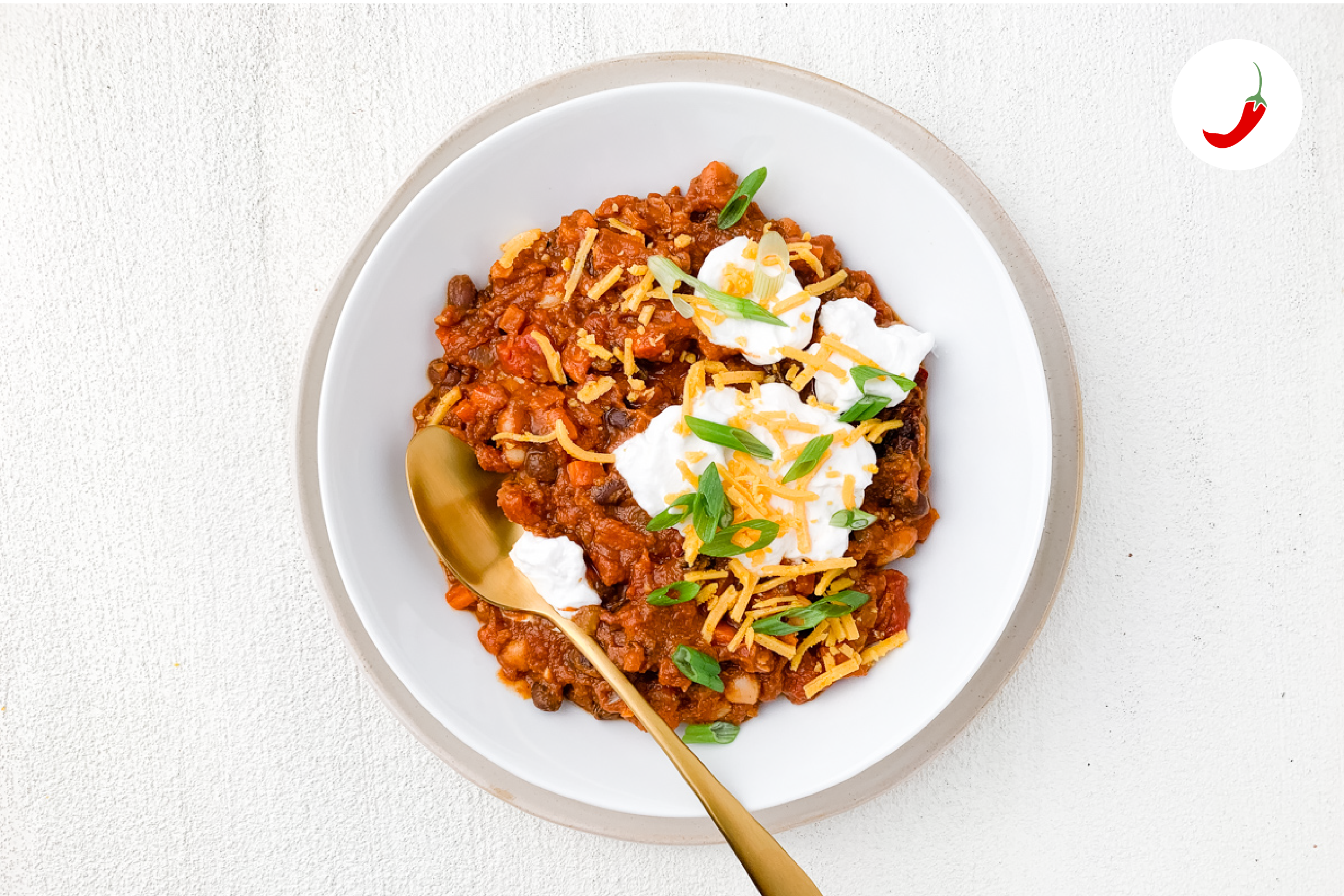 A nutrient-dense chili brimming with vegetables, warm spices, and flavor. This dish brings you vitamin A, vitamin C, potassium, calcium, and iron. A perfect warming dinner for the cold months!