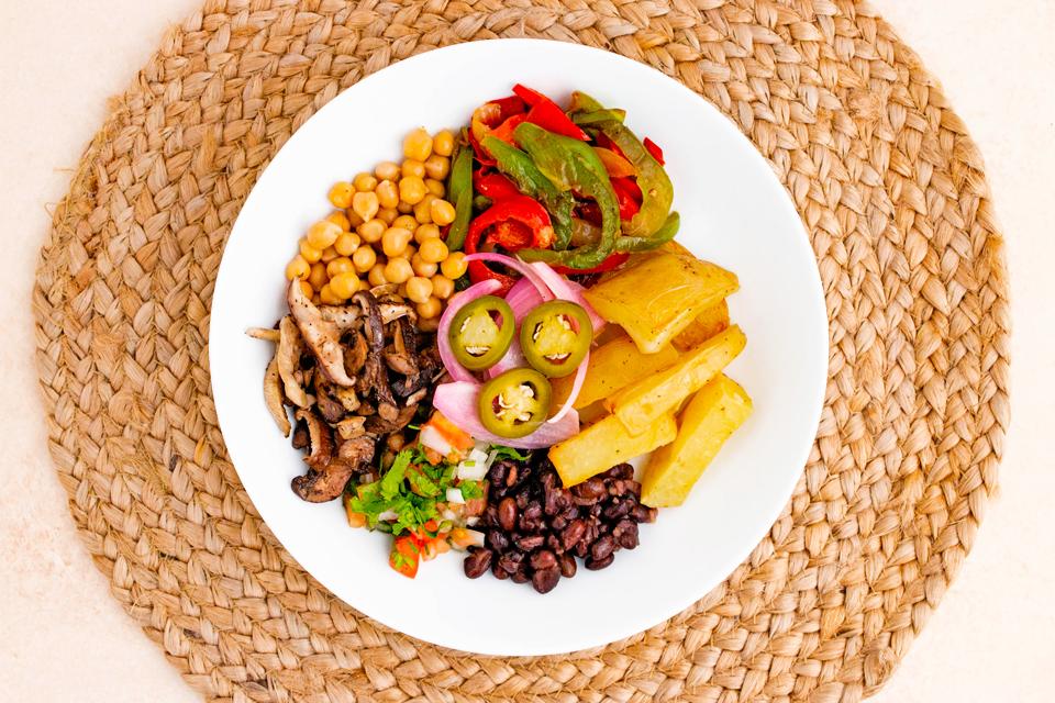 Fajita Bowl w/ Cilantro Avocado Yogurt with Grilled Chicken Strips