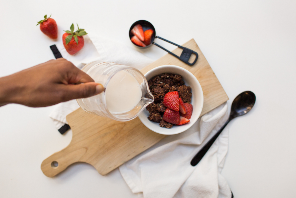 Strawberry Muesli Bowl w/ Chai Spiced Oat Milk (Vegan)