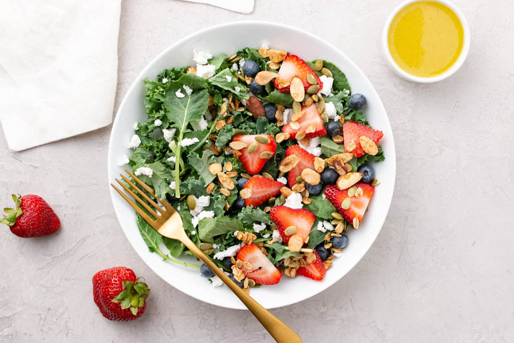 Summer Kale Salad w/ Macadamia Granola Croutons with Grilled Chicken Breast